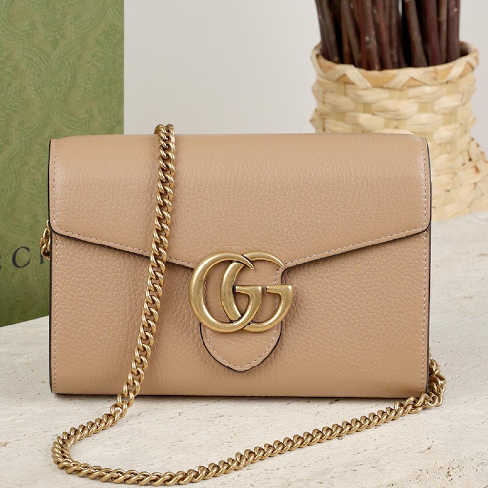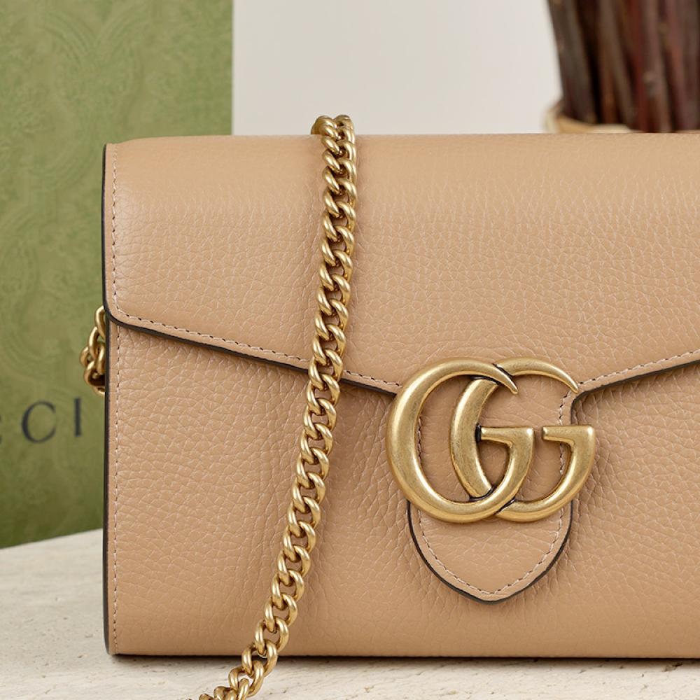 - شنطة قوتشي يد مزودة بحزام سلسلة ذهبية يضفي لمسة من التألق والأناقة.
