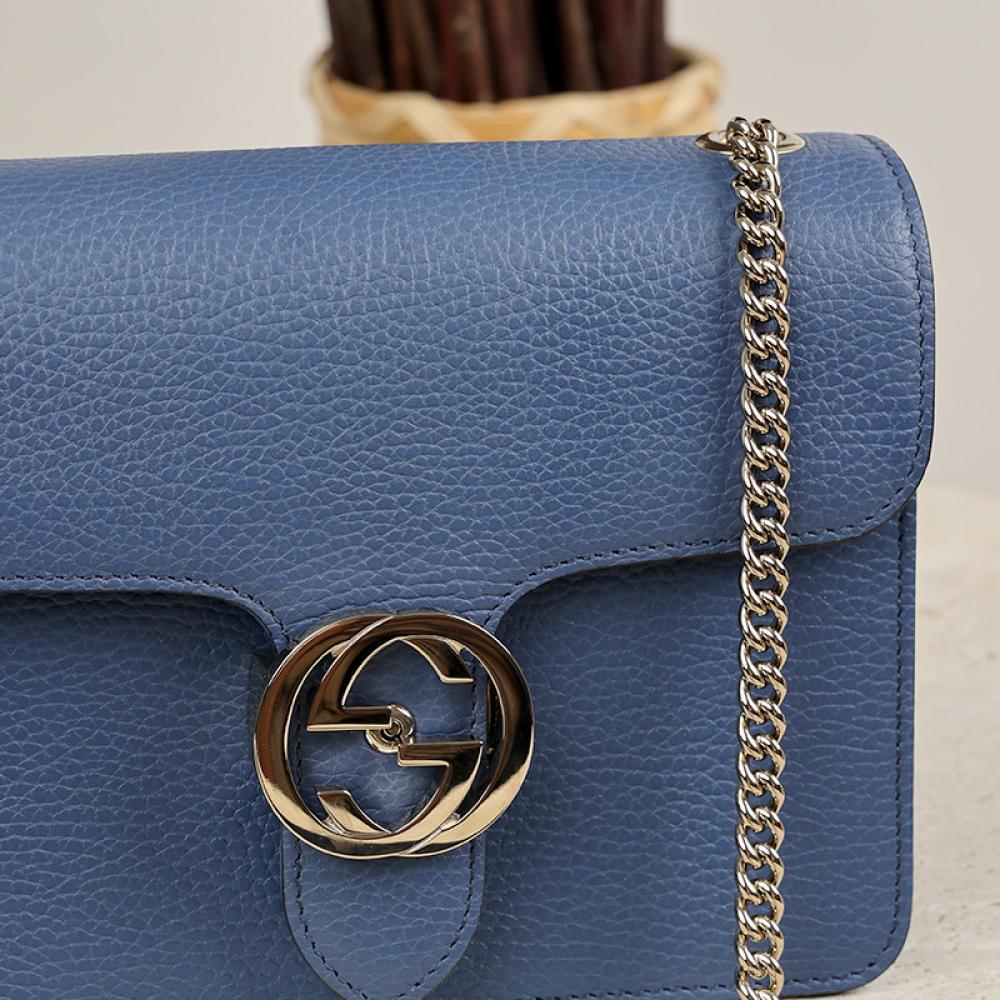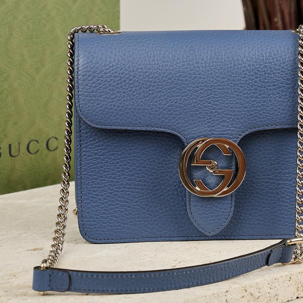• تأتي حقيبة كروس قوتشي بلون أزرق أنيق يضيف لمسة من التميز والابتكار إلى أي إطلالة.