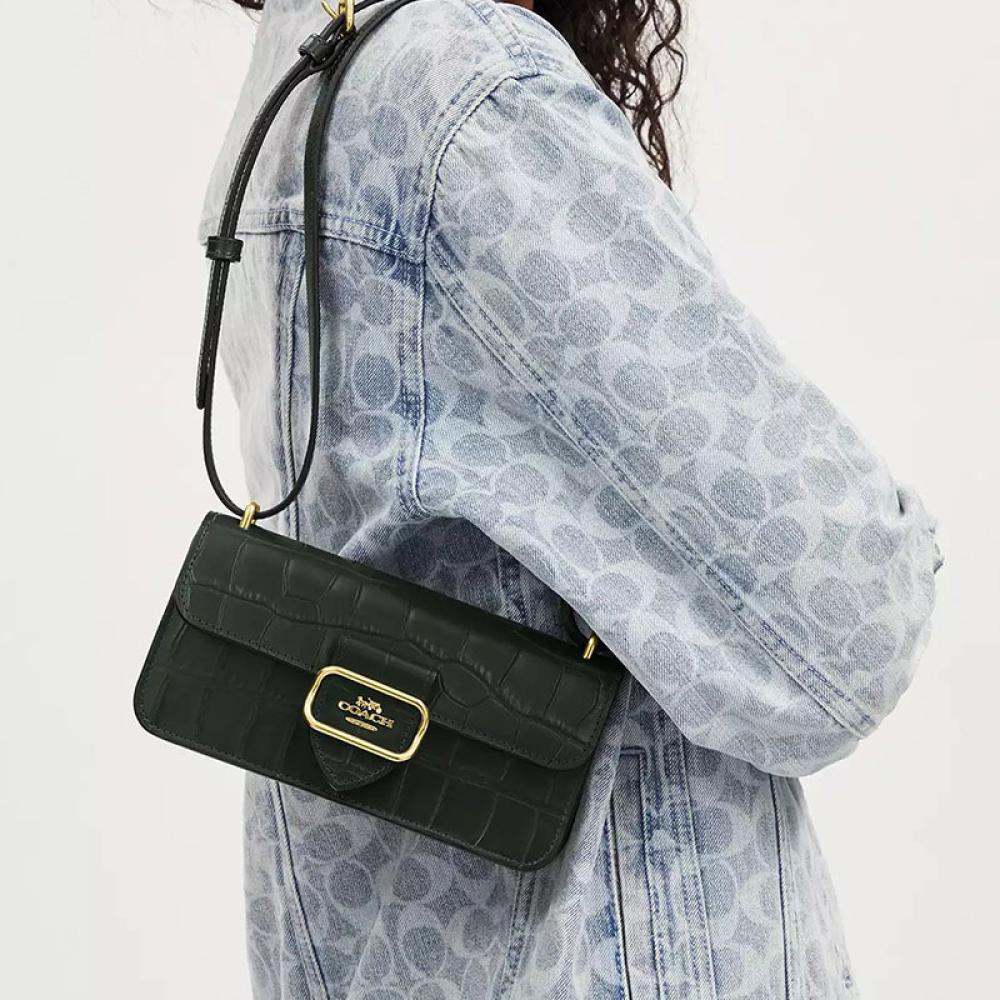 - شنطة coach مصنوعة من جلد التمساح المنقوش الناعم الذي يضفي عليها لمسة من الفخامة والأناقة.